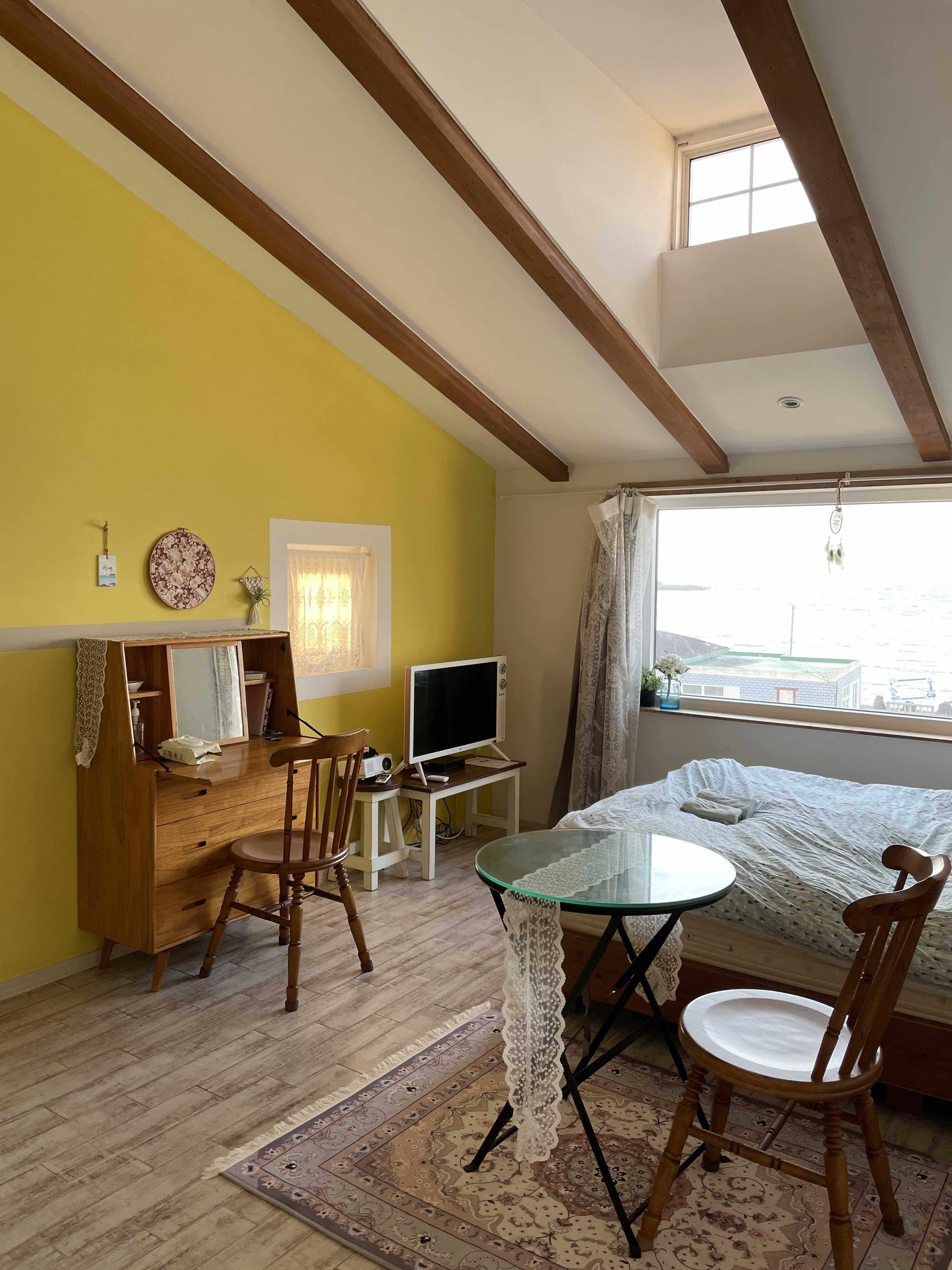 방도 보통의 게스트하우스보다 넓은 편이고 바다 뷰라 굳이 나가지 않아도 바다와 하늘을 볼 수 있다.